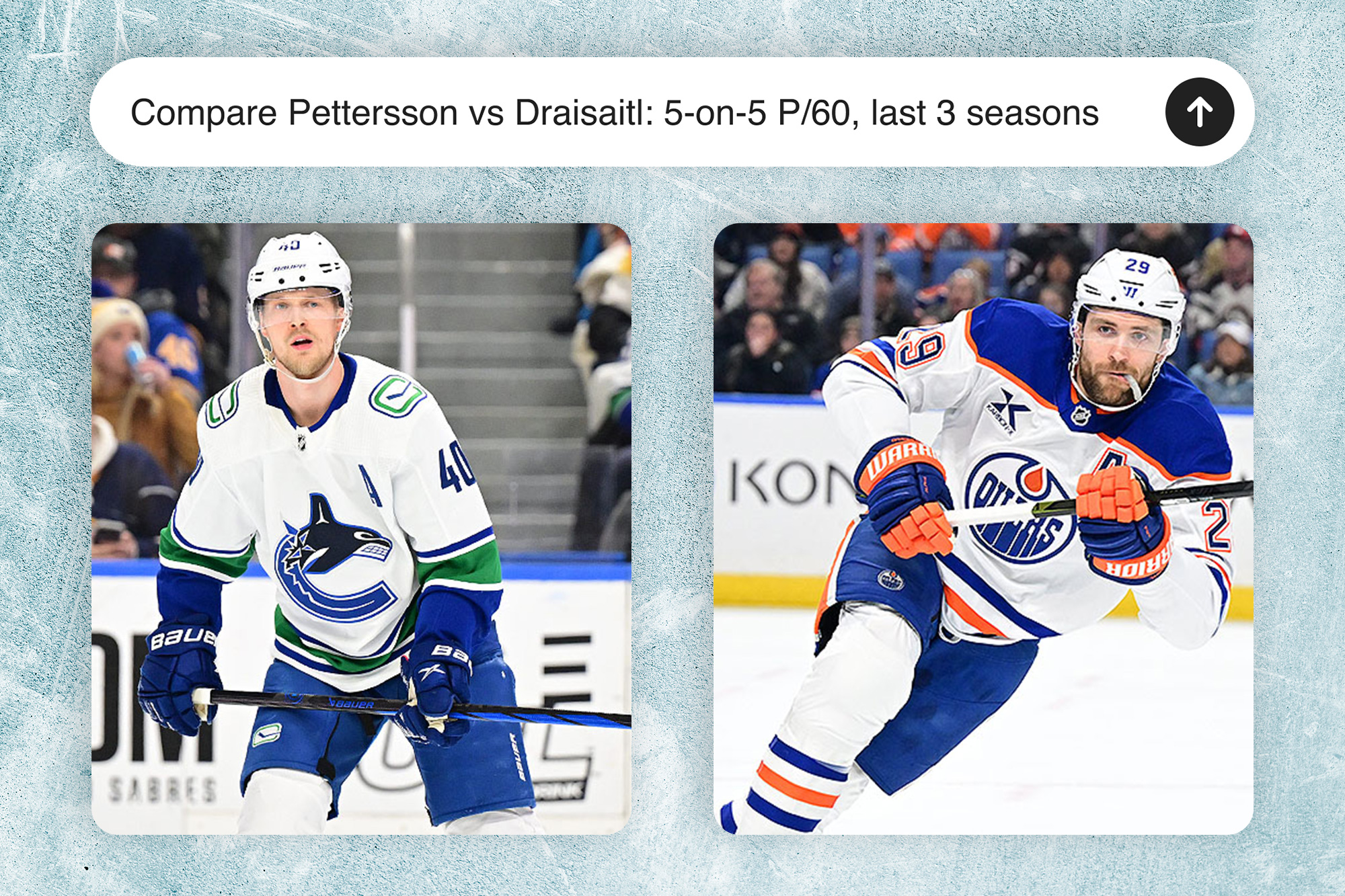 With ChatGPT, I can ask something like: “Compare Elias Pettersson’s 5-on-5 points per 60 min vs Leon Draisaitl over the past three seasons.” In seconds, I get a clean comparison — no platform-hopping required. Same goes for basketball stats: clutch shooting percentages, defensive win shares, usage rates — all at my fingertips with simple prompts.