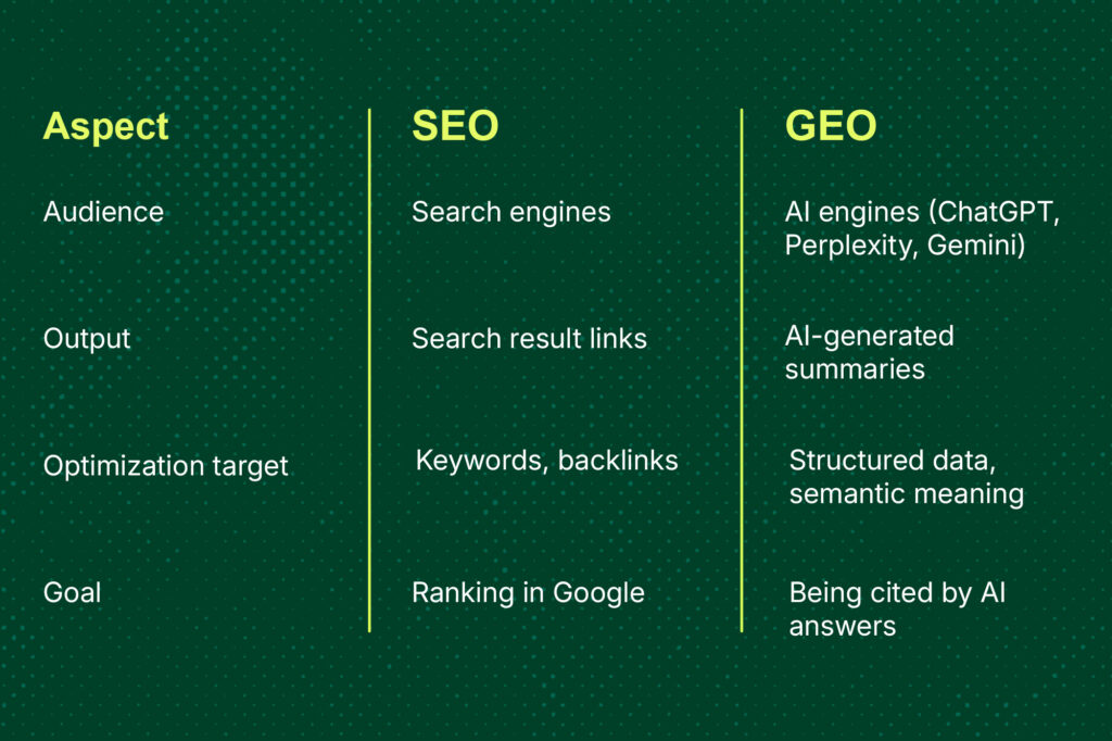 That’s where GEO (Generative Engine Optimization) comes in, the art of designing and structuring your content so AI can interpret it correctly and feature it in generated results.