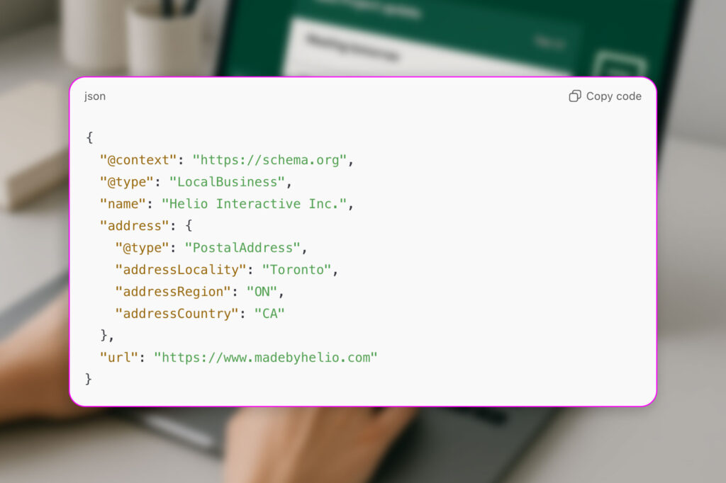 Now AI knows exactly where Helio is, what it does, and how to connect that to related searches like “creative agency near me” or “AI-driven website design Toronto.” To a human, that’s just code. But to AI, it’s context, proof that your brand is credible and connected across platforms.