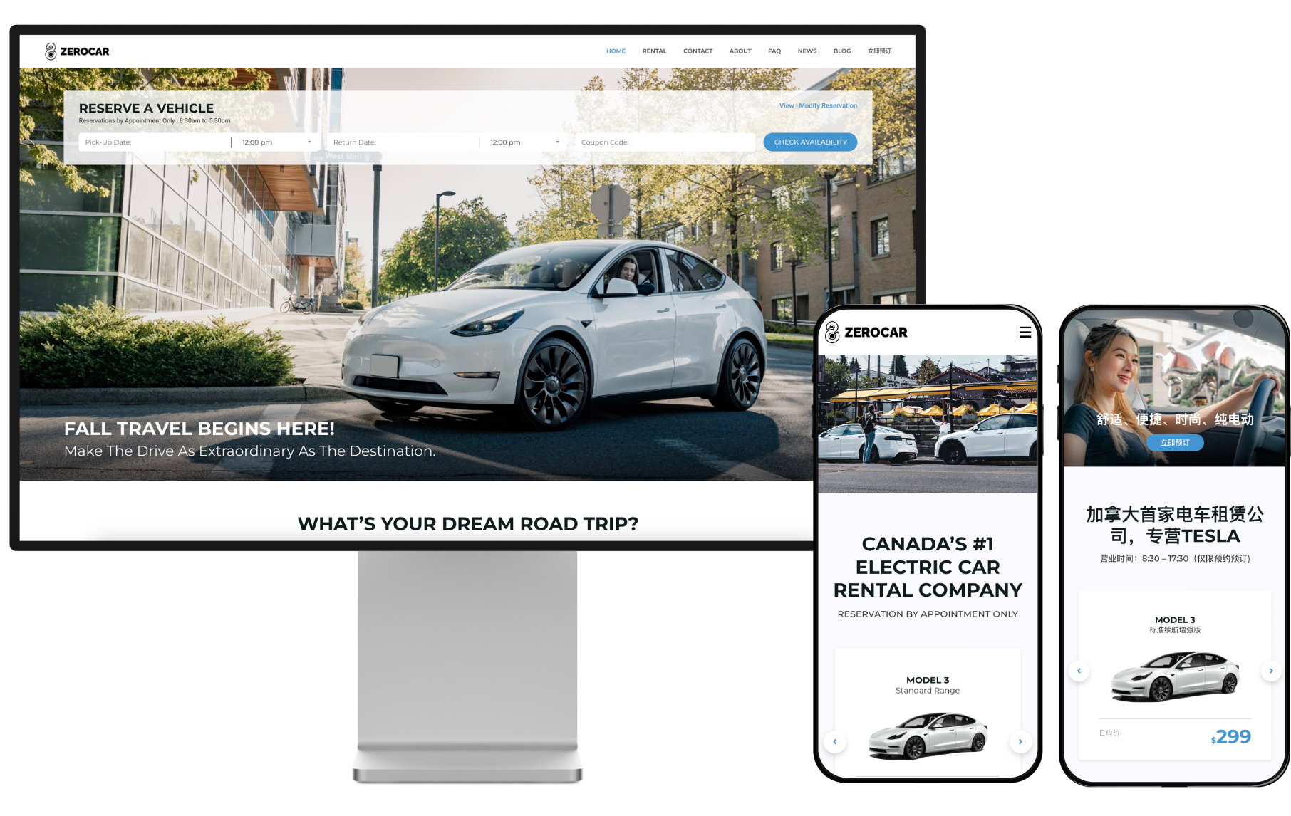 ZEROCAR, a premium Tesla rental service in Vancouver, sought to elevate its brand awareness, user experience, and website design to emphasize luxury, sustainability, and innovative technology. The goal was to refresh the brand with an eco-luxury aesthetic, streamline the booking process, and foster a stronger connection with its growing Chinese audience.